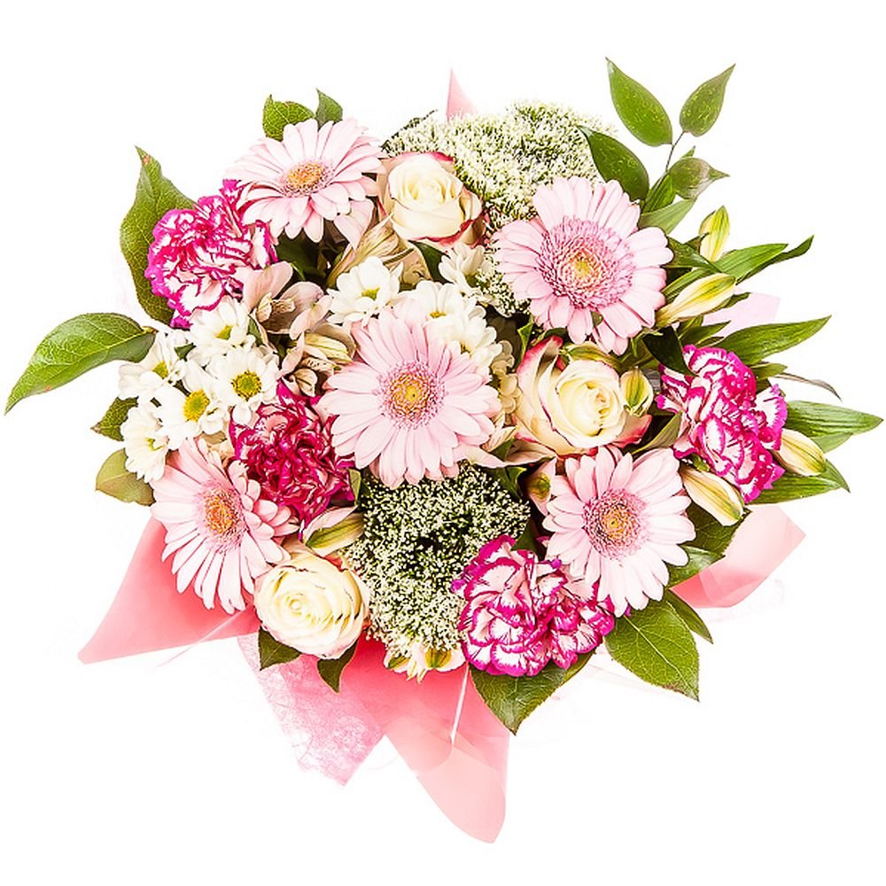 This beautifully arranged bouquet combines delicate shades of pink and white, creating an atmosphere filled with charm and gentle elegance. Soft gerberas and cheerful carnations harmoniously blend with lush greenery, making the bouquet suitable for a range of occasions, from birthdays to congratulations or simply to brighten someone’s day. We always ensure same-day delivery on working days, and you can select the exact delivery time that suits you best. Our skilled florists take great care in hand-tying each bouquet, giving attention to every detail. You can rely on us for reliable delivery and an email confirmation upon arrival, so your thoughtful gesture is always in safe hands.